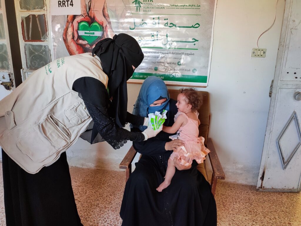The ongoing conflict in Syria has left millions of people struggling to access basic needs like food and water. Vulnerable women and children are at high risk of malnutrition, which can lead to disease and even death. Without access to essential nutrition services, these communities are at risk of further suffering. Through this campaign the International humanitarian relief (IHR) aims to providing life-saving nutrition services to vulnerable communities in northwest Syria. We established three rapid response teams to implement nutrition activities in Mhambel, Ehsem, Ariha, and Jisr Shughur sub-districts. These teams screened communities and reach all pregnant and lactating women and children under five years, conducting the MUAC test to confirm malnutrition cases and providing the required supplies. The teams also distributed cash vouchers to the most vulnerable households, enabling them to purchase nutritious food.